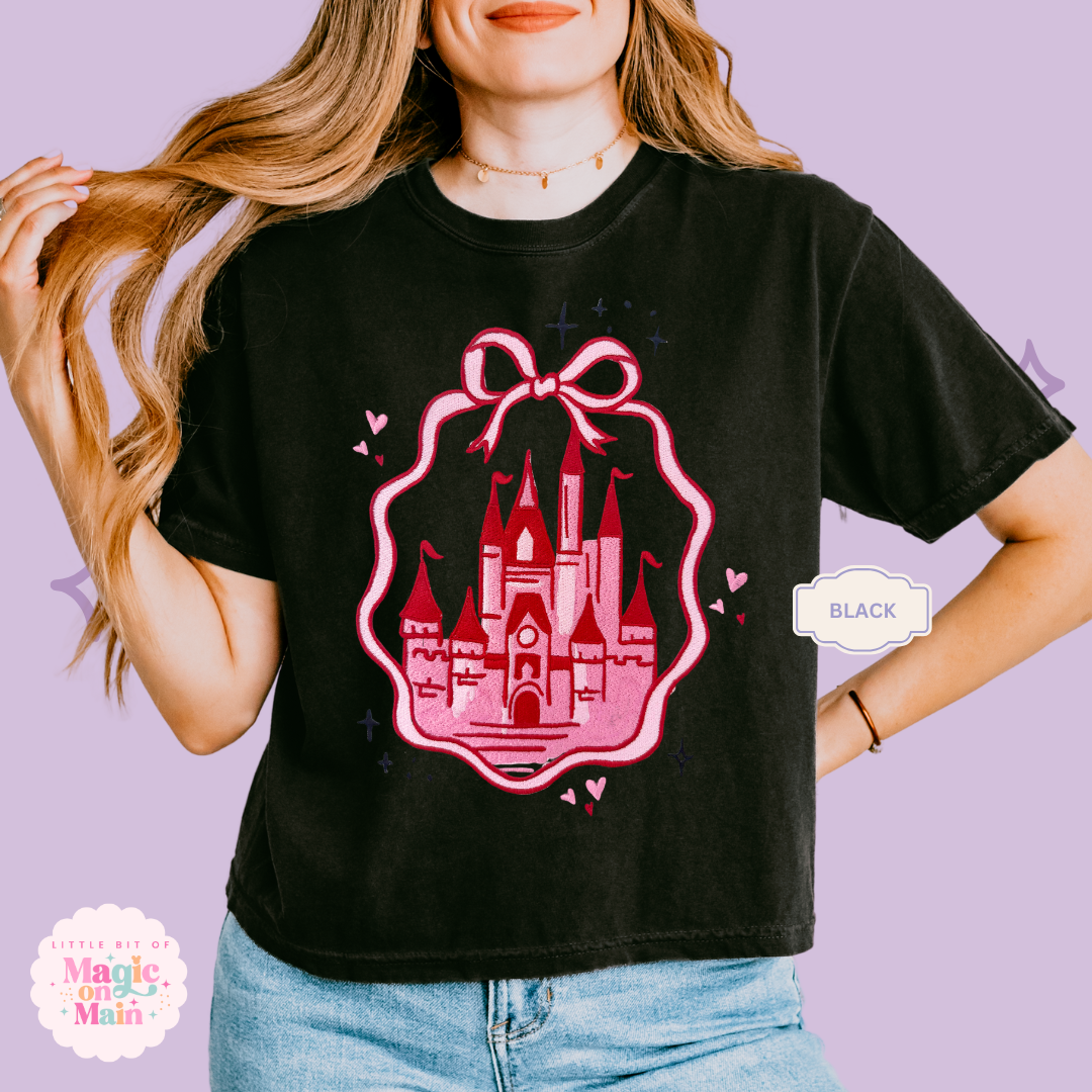 EMBROIDERED PINK CASTLE - WOMENS BOXY T-SHIRT 10003
