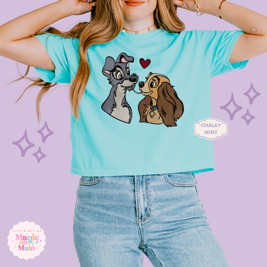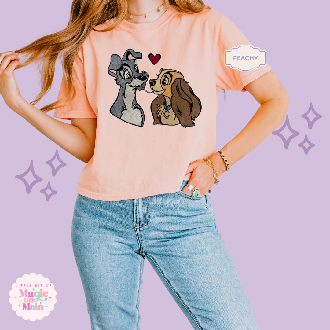 EMBROIDERED VALENTINE DOGS - WOMENS BOXY T-SHIRT 10017