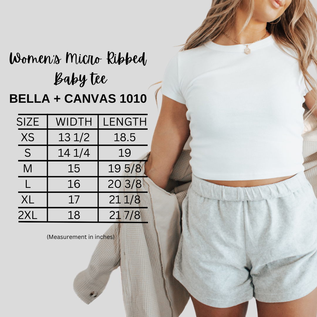 Adult baby tees are Bella + Canvas micro ribbed style 1010. To maintain our fastest turnaround processing times, our garments may be substituted with an alternate brand if the supplier is experiencing inventory shortages. If you have questions regarding which brand of t-shirt will be used for your order, please message us prior to purchasing to confirm inventory. Please note that there will be slight color variations between the adult/youth and toddler garments.